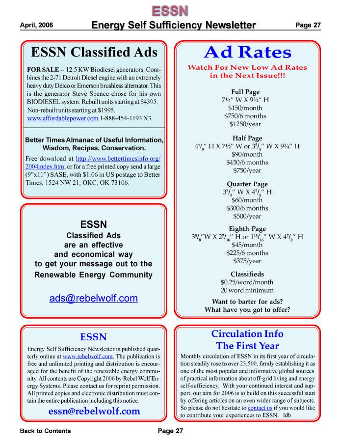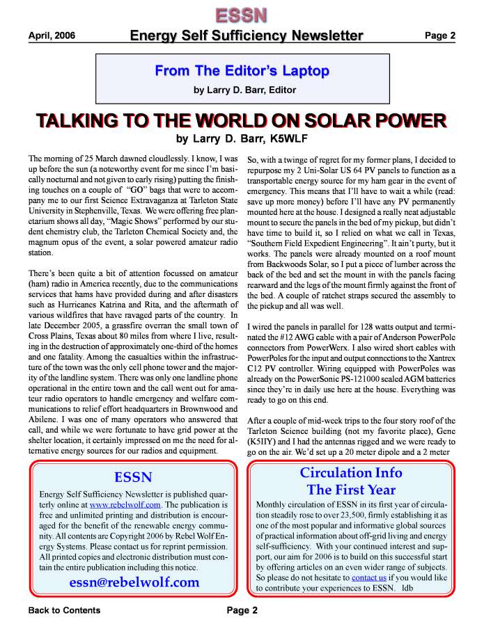 Energy Self Sufficiency Newsletters