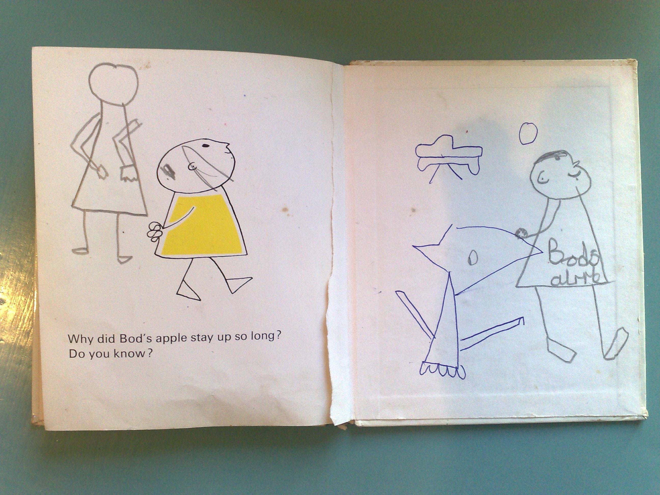 Bod And The Apple First page | Previous page | Next page ![]() Ivan Pope: And the author ends this examination of the art world with a tantalising question - and a challenge to all would-be artists. Why did Bod's apple stay up so long? Do you know? And the truth is - you don't, do you? But I do. |